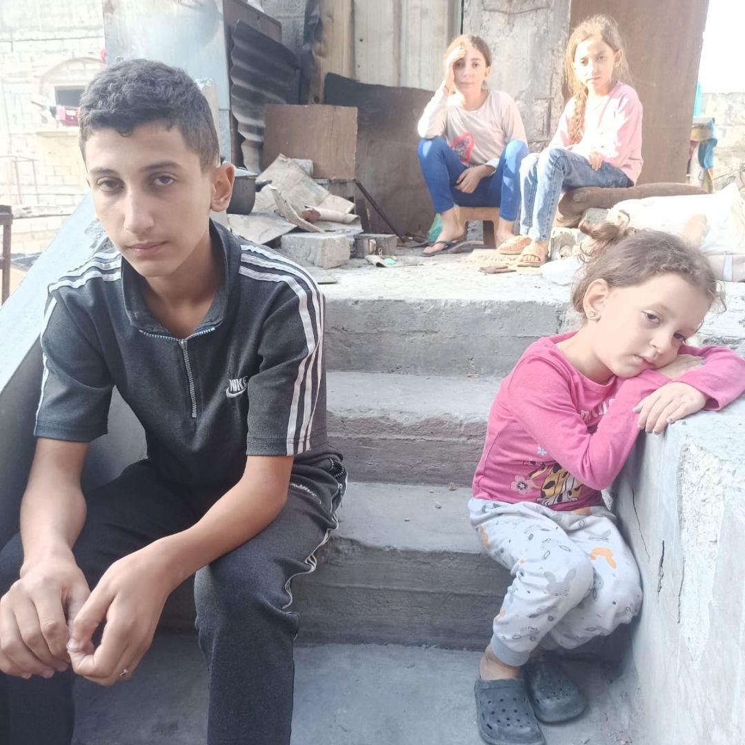 Reem z rodziną straciła wszystko - jej dom został zburzony, a cały dobytek, łącznie z ubraniami jej dzieci został pogrzebany pod gruzami. Jej rodzina trafiła pod naszą opiekę, kiedy dzieci były ranne po bombardowaniu. Obecnie po ewakuacji na południe rodzina mieszka i śpi na zewnątrz lub próbuje się chronić w zniszczonych wojną pustostanach. Najmłodsza córka Reem padła ofiarą ataku głodnych psów, kiedy spała w nocy na zewnątrz - dziewczynka ma pogryzioną rączkę i twarz. Czwórka dzieci Reem marzy o namiocie, który dam im ochronę przez zimnem, deszczem i atakami wygłodniałych zwierząt oraz da im poczucie bezpieczeństwa.