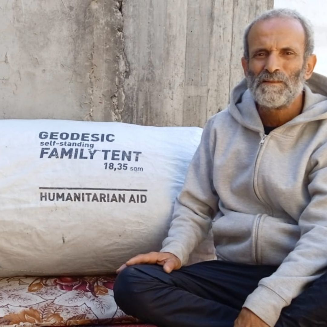 Pan Elyan jest ojcem trójki chłopców i opiekunem małej osieroconej dziewczynki. Zrozpaczony, codziennie prosi nas o pomoc: "Nie mamy nic - domu, namiotu, ciepłych ubrań dla dzieci, a w schroniskach w szkołach nie ma dla nas miejsca. Nie mam nawet materacy dla dzieci, więc na noc rozkładam folię na ziemi, na niej koc i tak kładę całą czwórkę obok siebie. Zasypiają głodne, zziębnięte i zmoknięte, kiedy pada deszcz. Proszę pomóżcie nam i podarujcie nam namiot, aby chronić moje dzieci od zimna i deszczu."